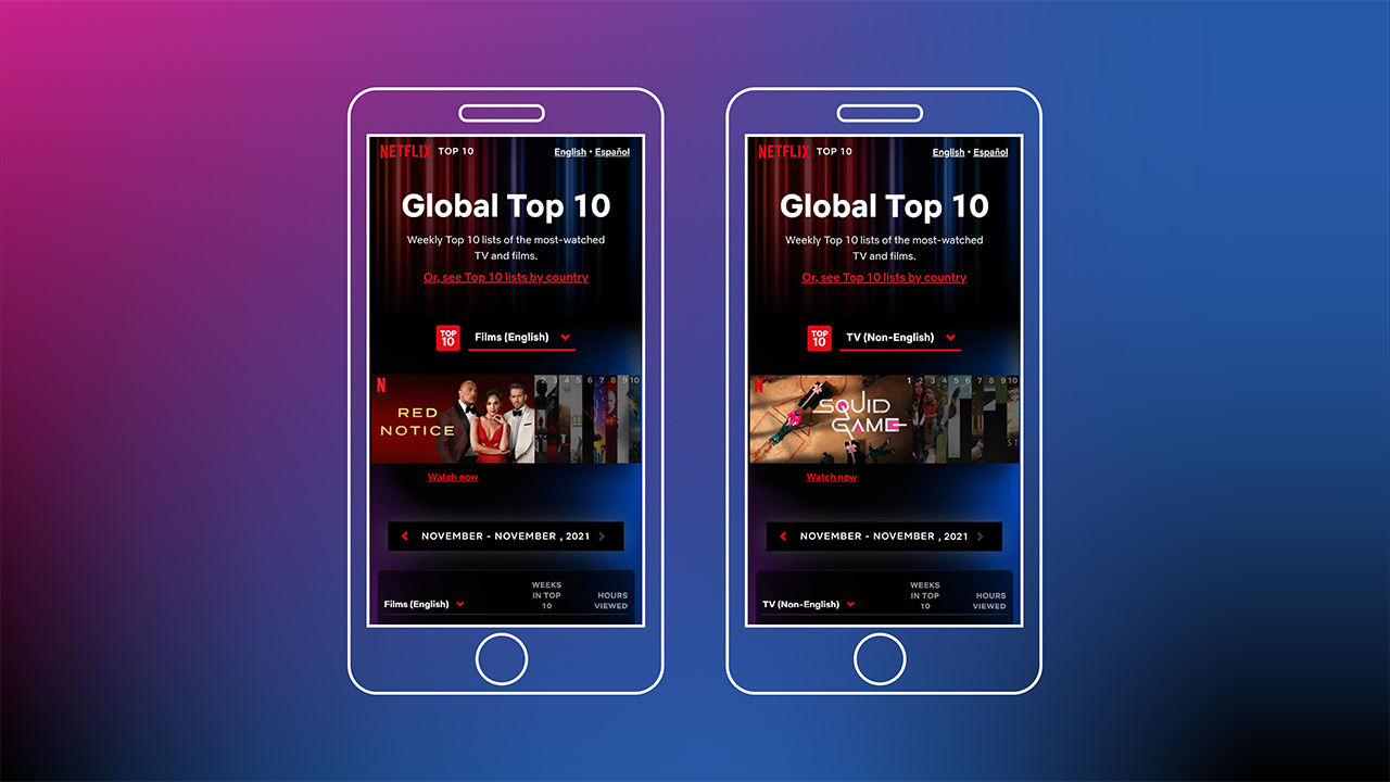 Bunun yanı sıra sadece global olarak değil 90'dan fazla ülke için de "ülke içi sıralamalar" seçeneği kullanıcılara sunulacak. İngilizce ve İspanyolca dillerinde kullanıma sunulan Global Top 10 web sitesi, Netflix’in açıklamasına göre gelecek yıl daha fazla dili destekleyecek.