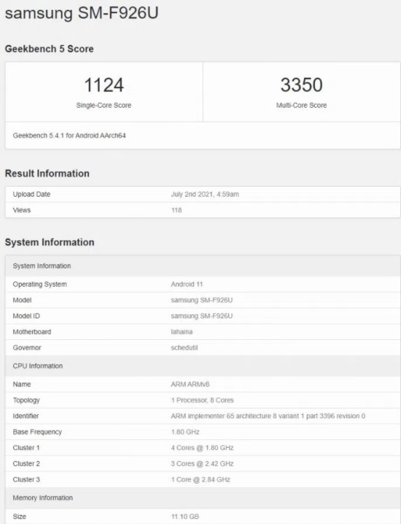 Geekbench'te görüntülendi. Samsung SM-F926U model adıyla listelenen cihazın,