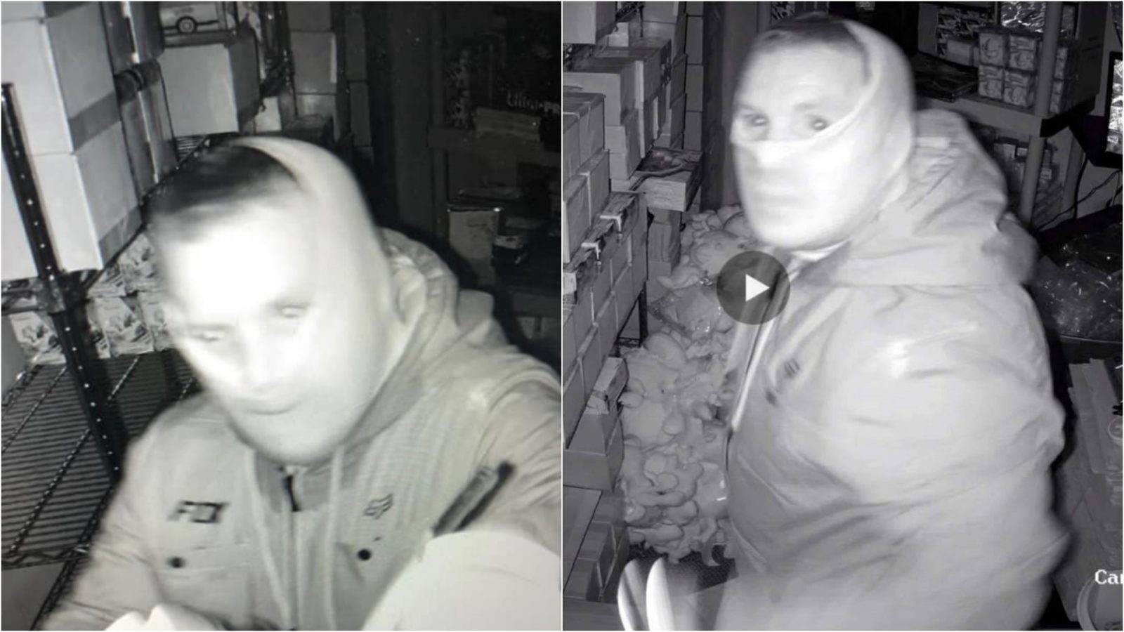 Pokémon kartlarını çalmak için tam iki saat harcadı. Tüm bunlar, mağazanın güvenlik kamerası sistemi aracılığıyla kayıt altına alındı.Hırsız hiçbir kapıyı açmadığı için dükkanın alarmları da devreye girmedi. Dükkanın ortaklarından Jason Peterson,