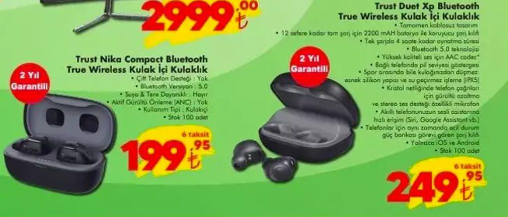 - Trust Nika Compact Bluetooth True Wireless Kulak İçi Kulaklık: 199 TL