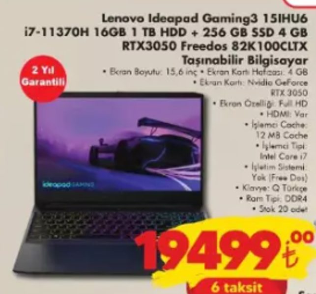 Fiyatı: 19.499 TLÖzellikleri- Intel i7-11370H işlemci 12 mb Cache