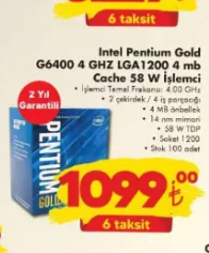 Fiyatı: 1.099 TLÖzellikler- 4 GHz işlemci frenaksı
