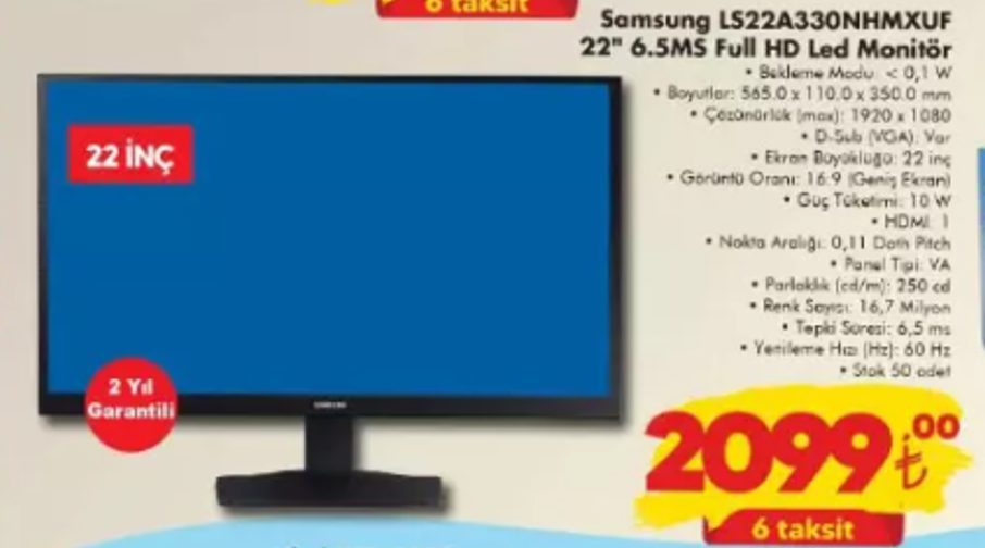 Fiyatı: 2.099 TLÖzellikler- 22 inç boyut