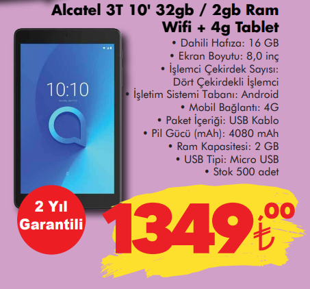 Alcatel 3T 10' 32gb / 2gb Ram Wifi 4g Tablet