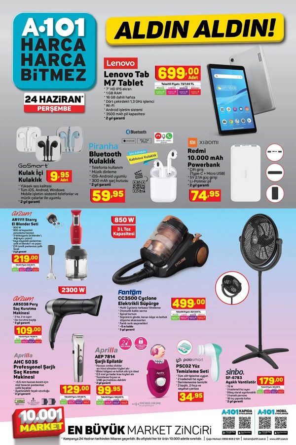 Bir diğer uygun fiyatlı ürün, Redmi 10.000mAh kapasiteli powerbank. Bu ürünün fiyatı ise 74.95 TL. Toshiba 55 inçlik 4K akıllı TV’nin fiyatı 4299 TL olurken, Toshiba 43 inçlik Full HD televizyon 3099 TL’lik fiyat etiketine sahip. Televizyon arasında Samsung model 40 inçlik uydu alıcılı Full HD televizyon 2699 TL. Buna ek olarak, 6.2 inçlik Reeder P13 Blue Max Lite model de 1499 TL fiyat etiketine sahip.