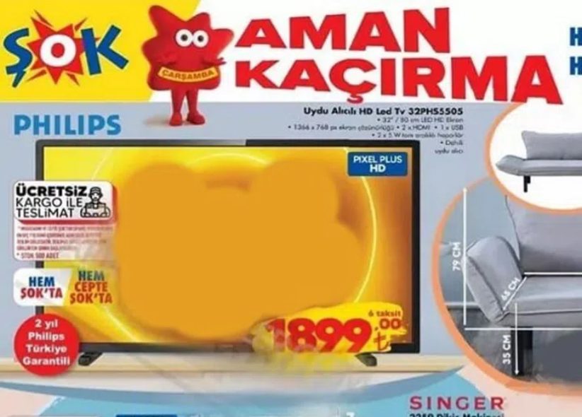 Şok marketlere 23 Haziran’da gelecek ürünler arasında 32 inçlik Philips dahili uydu alıcılı televizyon bulunuyor. Bu televizyon HD Ready çözünürlüğe sahip ve 1899 TL fiyata sahip olacak. Siz marketlere gelen aktüel teknoloji ürünleri ile ilgili ne düşünüyorsunuz? Bu ürünlerden memnun musunuz? Görüşlerinizi