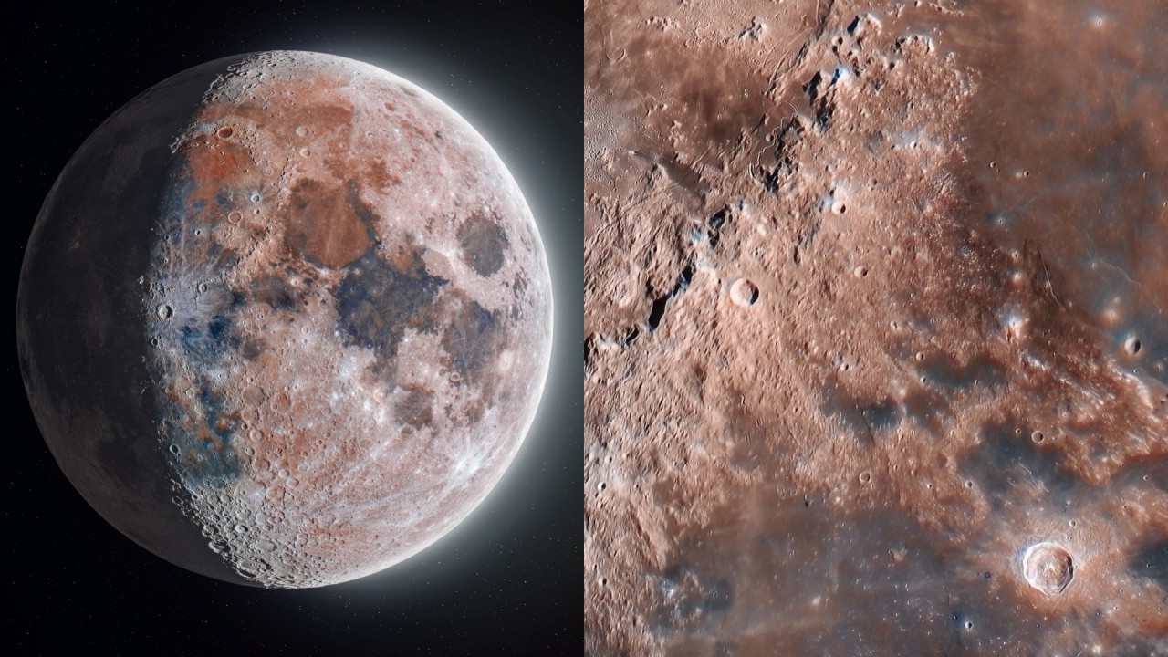 174 megapiksel boyutundaki görüntü, 200.000'den fazla ayrı görüntünün birleştirilmesiyle oluşturuldu ve Ay'ın tipik olarak Dünya'dan gözlemlenemeyen gerçek renklerini gözler önüne seriyor. Ay'ın yüzeyinin bir tarafında kırmızımsı bir renk varken diğer tarafında tunç mavisi bir renk görülüyor.