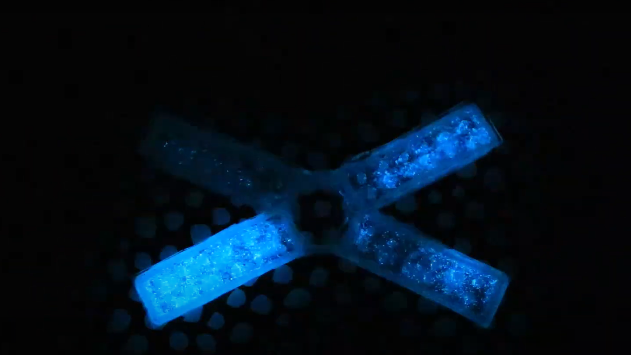 Cihazları yapmak için araştırmacılar, yumuşak, esnek, şeffaf bir malzemeden oluşan bir oyuğun içine dinoflagellate Pyrocystis lunula'nın bir kültür solüsyonunu enjekte etti. Üretilen malzeme şekli herhangi bir şekilde olabilir; burada araştırmacılar düz levhalar, X şeklindeki yapılar ve küçük poşetler dahil olmak üzere çeşitli şekilleri test ettiler.