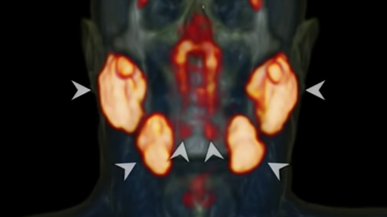 Hollanda Kanser Enstitüsündeki onkologlar, baş ve boyun kanserli hastalar üzerinde yaptıkları araştırmanın bir parçası olarak yeni bir tür tarama kullanıyorlardı. Prostat kanserinin vücutta yayılmasını izlemenin etkili bir yolu olduğu gösterilen prostata özgü zar antijen ligandları (PSMA PET/CT) taramaları ile pozitron emisyon tomografisi/bilgisayarlı tomografi kullandılar. Hastalara, taramadan önce parlak bir şekilde parlayarak hastadaki tümörleri vurgulayan radyoaktif glikoz enjekte edildi.