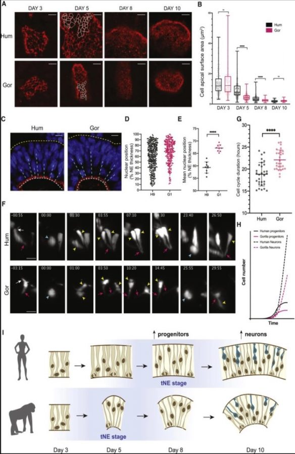 İnsan beyni, maymun veya şempanze gibi hayvanların beyinlerinden çok daha büyük ve çok sayıda nörona sahip olmamız bizi farklı kılıyor.Laboratuvar ortamında küçük beyin dokusu örnekleri geliştirilerek, şempanze ve maymunlara kıyasla insan beyninin erken gelişimindeki önemli bir fark tespit edildi.Yapılan incelemeler sonucunda insanlar ilk gelişme sürecinde beyinleri nöral progenitör hücreler olarak bilinen hücrelerden inşa edilir.Bu hücereler de defalarca çoğalma özelliğine sahiptir ve süreç sonunda nöronlar oluşur.Bilim insanlarının açıklamasına göre daha fazla progenitör hücre daha fazla nöron demektir ve insanlardaki progenitör hücreler, maymun ve şempanzelerin progenitör hücrelerden daha farklı davranmaktadır.Yapılan deney sonuçlarına göre insan progenitör hücrelerinin, geçiş yapmadan önce bir hafta boyunca çoğalmaya devam ettiği gözlemlenmiş.Sonuç olarak, insan beyninde daha fazla nöron bulunması bu soruların cevabı olabilir gibi duruyor.