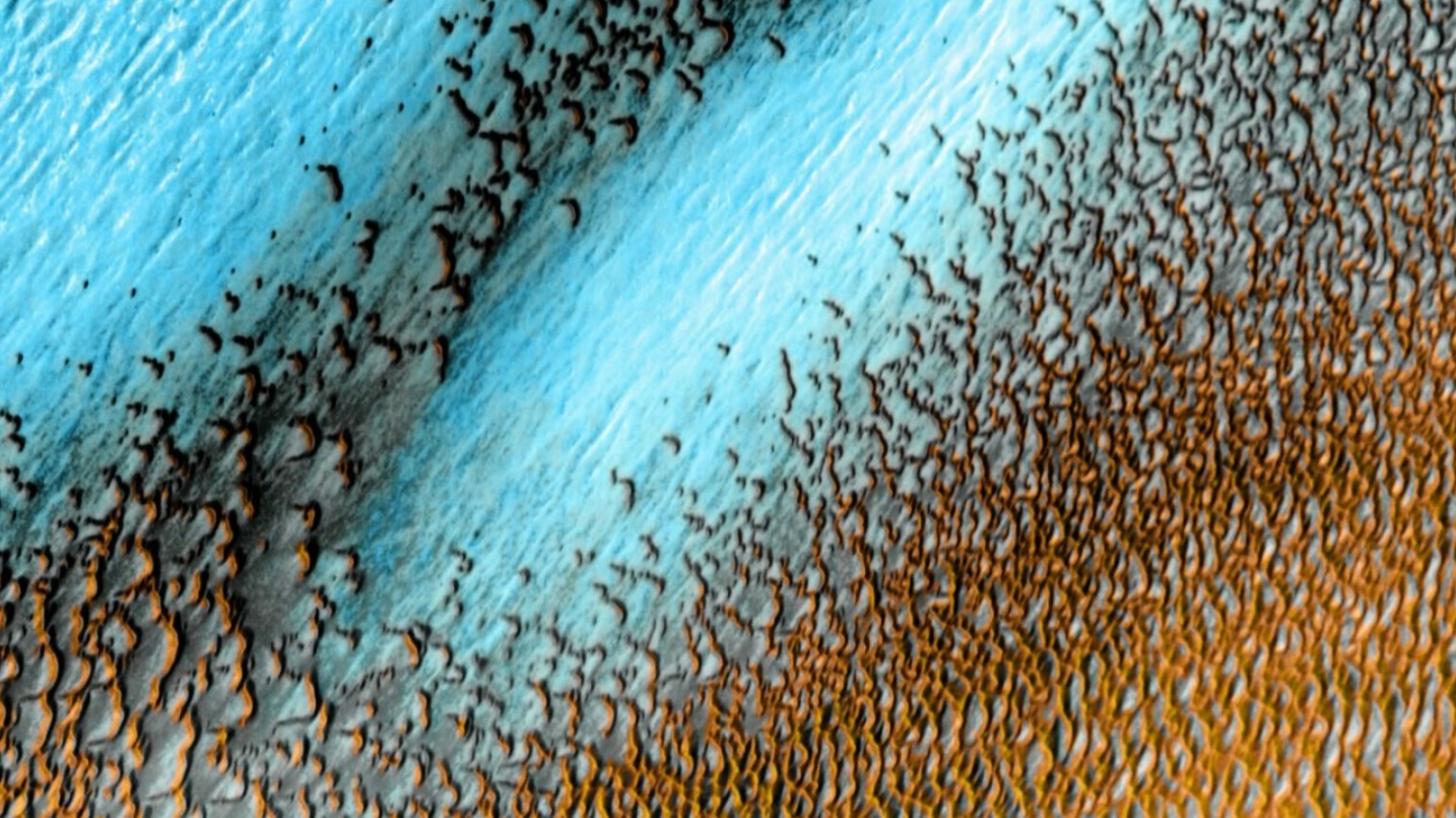 mavi kum tepelerinin göründüğü fotoğraf, göz kamaştırıyor.NASA'nın yayınladığı kum tepelerinin doğal manzarasını gösteren büyüleyici fotoğraf sosyal medyada gündem oldu.Mars'ın