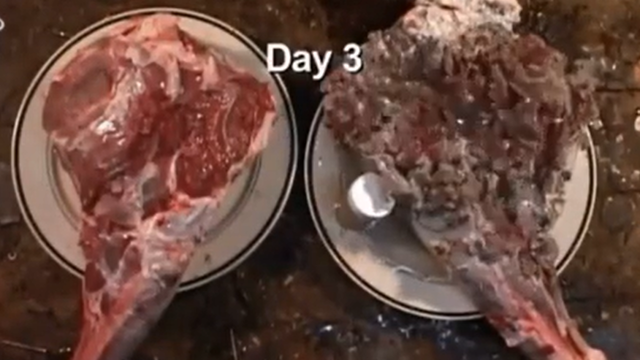 Animal Planet tarafından çekilen deney videosunda, biri normal, diğeri ise komodo ejderinin salyalı zehri enjekte edilen iki pirzola gösteriliyor. Klibin başında her iki et parçası da aynı görünürken, soldaki büyük bir kan ve doku kaybı göstererek kontrolsüz bir şekilde şişmeye başlıyor.
