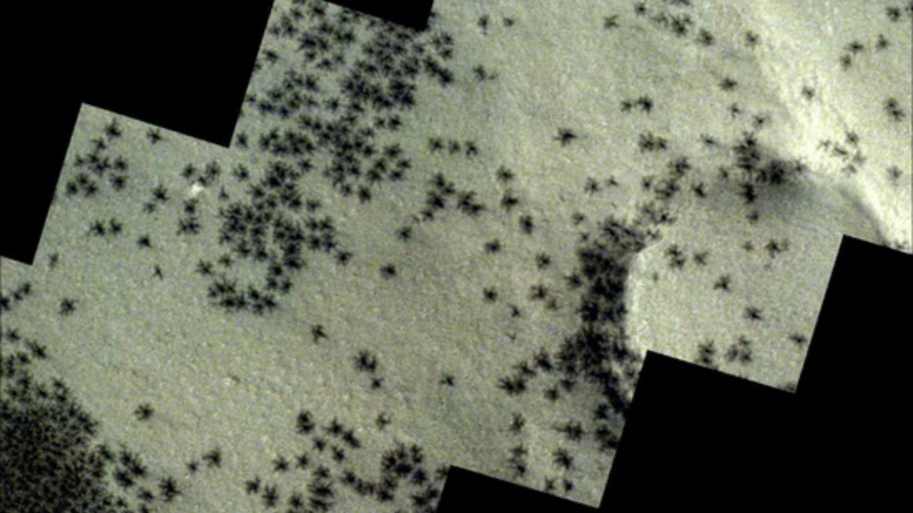 ESA'nın açıklamasına göre, bu örümcek benzeri desenler, kış aylarında biriken karbondioksit tabakalarının ilkbahar güneşi altında buharlaşmasıyla oluşuyor. Güneş ışığı, tabakanın altındaki karbondioksit buzunu buharlaştırarak gaz haline getiriyor ve üzerindeki buz tabakalarını kırıyor. Sonuç olarak, gaz yüzeye doğru yükselirken koyu malzeme çeker ve yüzeyde karanlık lekeler oluşturur. Bu süreç ayrıca buzun altında oyulmuş örümcek ağı şeklinde desenler oluşturur.