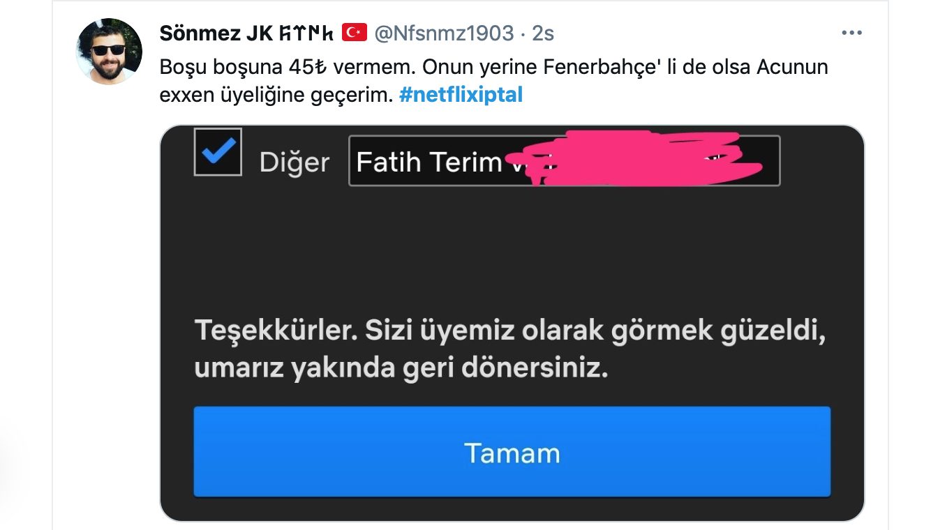 #netflixiptal etiketine destek veren bazı kullanıcıların paylaşımları: