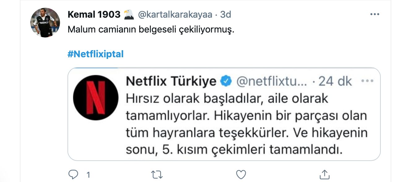 #netflixiptal etiketi trendlere girdi.Dünyanın en popüler yayın platformu