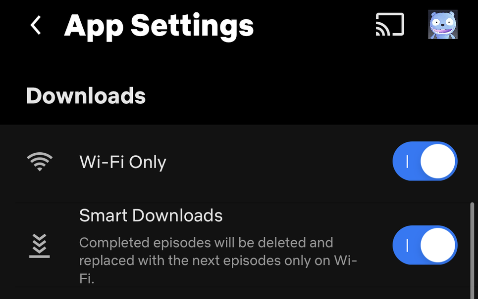 İşe giderken Netflix izliyorsanız veya internet bağlantınız sorunluysa Akıllı İndirme özelliği kesinlikle yardımcı oluyor . Etkinleştirildiğinde, bu, tamamlanan bölümleri otomatik olarak siler ve tekrar kablosuz bağlantıya geçtiğinizde bunları sonraki bölümlerle değiştirir. Bunu iOS ve Android uygulamalarında Profil > Uygulama Ayarları > Akıllı İndirmeler bölümünden etkinleştirebilirsiniz .