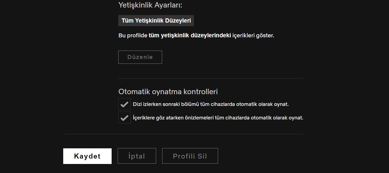 Netflix uygulaması bir şeyleri otomatik oynatmaya resmen bayılıyor. Bir şey izledikten sonrak, yeni bölümü ya da bir film ararken ana ekrandaki önizlemeleri otomatik oynatma olayı bazen sinir bozucu olabiliyor. Bahsettiğimiz iki özelliği de profilinizde devre dışı bırakabilirsiniz. Netflix web sitesini açtıktan sonra Profiller ekranına gidin . Burada “ Profilleri Yönet ” düğmesine tıklayın ve bu özellikleri devre dışı bırakmak istediğiniz profili seçin. Şimdi, " Bir dizideki sonraki bölümü tüm cihazlarda otomatik oynat " ve " Tüm cihazlarda gezinirken önizlemeleri otomatik oynat " seçeneklerinin işaretini kaldırın . Tercihlerinizi kaydetmek için “ Kaydet ” düğmesine tıklayın .