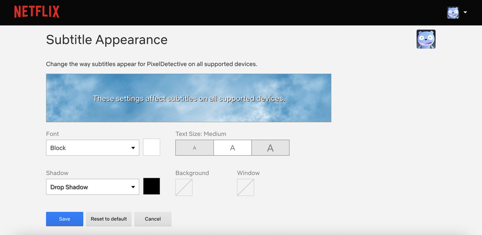 Altyazı yazı tipini, rengini ve boyutunu değiştirebilirsiniz. Netflix web sitesini bir tarayıcıda açın ve Profiller menüsünden “ Hesap. ” Profiller bölümüne ilerleyin ve profilinizi seçin. Burada “ Altyazı Görünümü ” seçeneğini seçin. Buradan altyazı yazı tipini, metin boyutunu, gölgeyi, arka plan rengini ve pencere rengini değiştirebilirsiniz. İşiniz bittiğinde, ayarlarınızı kaydetmek için “ Kaydet ” düğmesine dokunun .