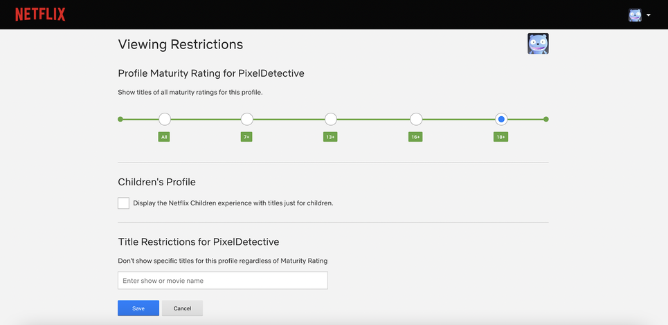 Netflix hesabınızı çocuklarınız yada yaşça daha genç kişilerle paylaşıyorsanız, yetişkinlere uygun içeriği engellemek isteyebilirsiniz. Bunu yapmak için Profiller > Hesap'a gidin . Aşağı kaydırın ve profilinizi seçin. Burada “ Görüntüleme Kısıtlamaları ” bölümüne gidin ve hesap şifrenizi girin. Üstten, olgunluk derecesini değiştirebilirsiniz (7+ ila 18+). Dilerseniz mevcut profili de çocuk profiline çevirebilir ve sadece çocuklara uygun içerikleri gösterebilirsiniz. Alttan, belirli bir TV şovunu veya filmi engellemeyi seçebilirsiniz. İşiniz bittiğinde, “ Kaydet ” düğmesini tıklayın.