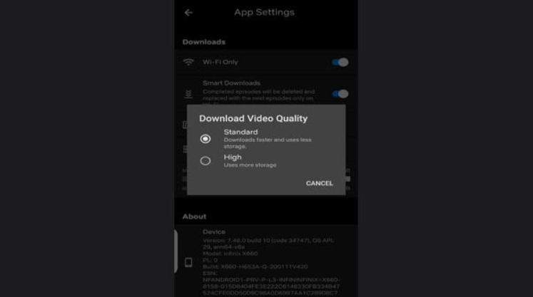Şimdi içeriği deneyimlemek istediğiniz video kalitesini seçmeniz gerekiyor. Netflix iki kalite sunar. Standart 720p ve 1080p çözünürlükte yüksek, bu ikisinden birini seçmeniz gerekir. Standard'ın cihazınızda High'ın biraz daha fazla yer kapladığı yerlerde daha az yer kapladığını unutmayın. Akıllı telefonunuzda bulunan boş alana bağlı olarak içeriğin kalitesini seçebilirsiniz.