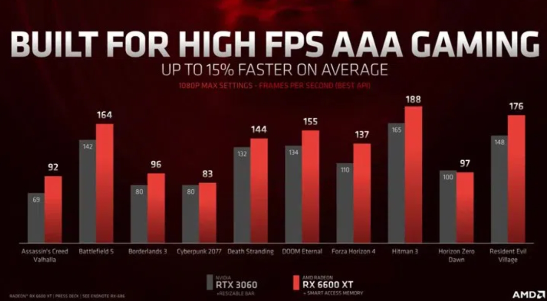 Referans tasarımı üretilmeyecek olan kartın n saat hızlarında da artışa giden AMD, 2, 359 MHz ana saat hızı ve 2, 589 Mhz boost hızı sunuyor. Şirket yeni kartı, Nvidia’nın RTX 3060’ına rakip olarak konumlandırıyor ve FPS testlerine baktığımızda sadece Horizon Zeo Dawn oyununda Nvidia’ya kaybediyor.E-spor oyunları için ekstra FPS artışı destekleyen kart, yapılan tüm testlerde Akıllı Erişim Belleği ve RTX 3060’ta Resize Bar etkinleştirilerek test yapılmış.