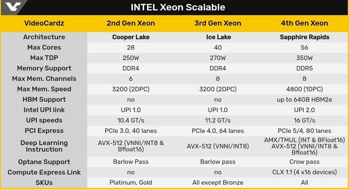 Intel’in Sapphire Rapids tabanlı Xeon işlemcilerinin bu sene bitmeden piyasada olması bekleniyordu fakat gecikmeler yaşanıyor. Intel Sapphire Rapids tabanlı dördüncü nesil Xeon işlemciler, 56 çekirdeğe kadar ölçeklendirebilme, DDR5 bellek desteği, 4800MHz bellek frekansı, 64GB’a kadar HBM2e bellek, hızlı iç bağlantı teknolojisi CLX 1.1 desteği gibi avantajlar sunuyordu.