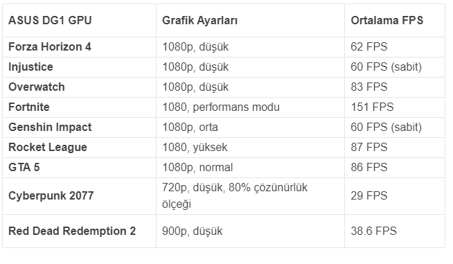 GTA 5, Cyberpunk 2077, Forza Horizon 4 ve Red Dead Redepmtion 2 gibi oyunlarda test edilen ekran kartı, 1080p oyun deneyimini düşük ayarlarda sunabilen uygun fiyatlı bir kart olarak karşımıza çıkıyor.İşte test sonuçları: