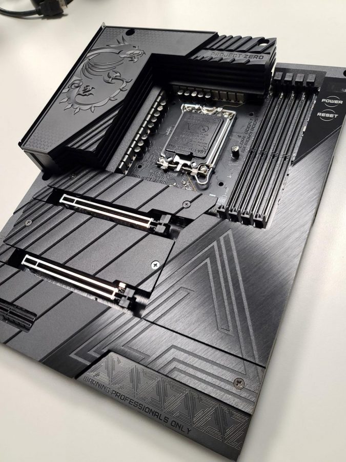 MEG Unify anakart platformunu temel alan MSI Project Zero, 4 kanal DDR5 DIMM modüllü Z690 versiyonu olduğu tahmin ediliyor.Anakart üzerindeki tüm girişler, SATA ve güç bağlantıları anakartın arka kısmına konumlandırılmış. Böylece ön kısımda oldukça temiz bir görüntü sağlanmış.