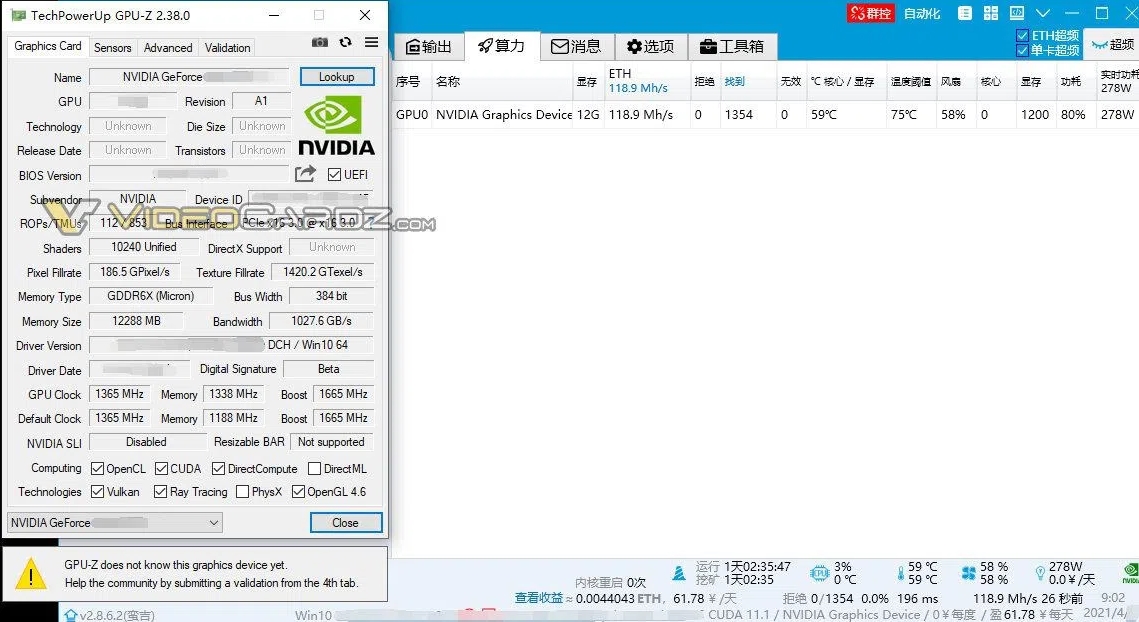 Son dönemde olduğu gibi bu ekran kartı da oyunculardan çok kripto para madencilerini heyecanlandırıyor. Öyle ki ekran kartının oyun performans testlerinden önce kripto para kazma performansı paylaşıldı. NVIDIA'nın tüm RTX 30 serilerine kripto para kazma sınırı getireceği ve yeni kartların da doğuştan dirençli olacağı söylenmişti ama bu kart için işler pek öyle değil gibi. İş ortaklarına gönderilen ilk örneklerde madenci kısıtına yer verilmediği iddia edilirken paylaşılan ekran alıntısının kısıtlı bir karta ait olup olmadığı doğrulanmış değil.