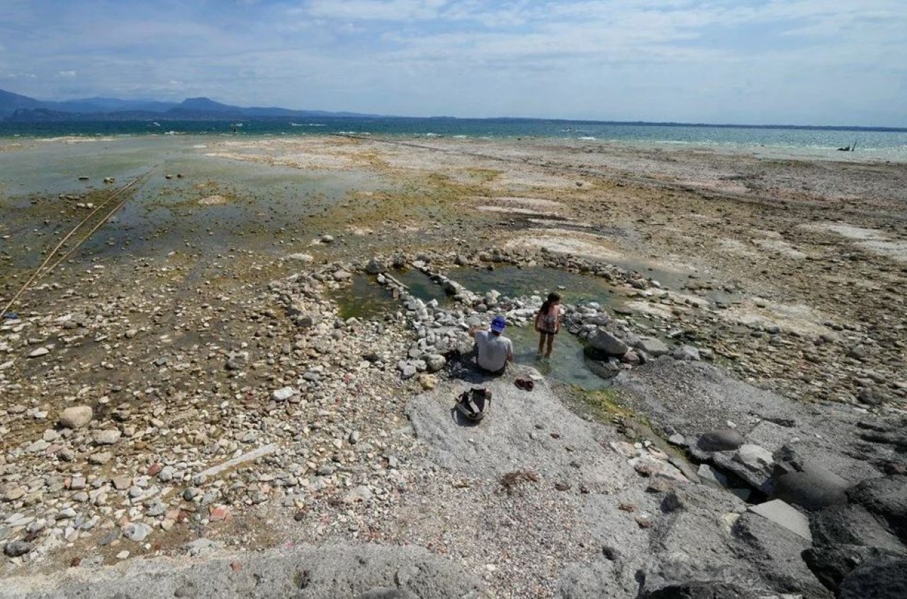 Gölde bulunan Sirmione Yarımadası'nı çevreleyen kayalar, suyun çekilmesiyle ortaya çıktı.