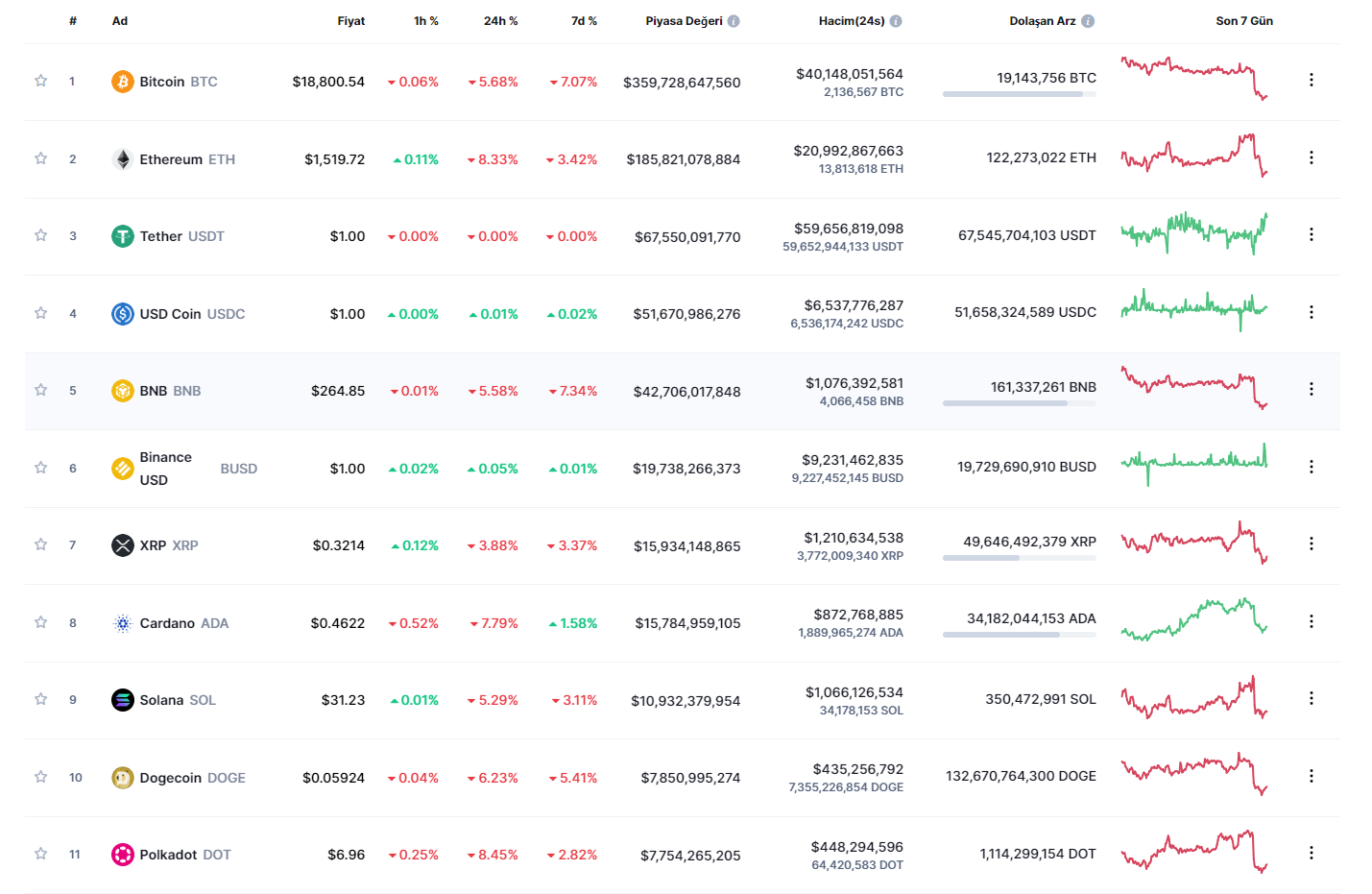 Not: Tüm bilgiler Coinmarketcap üzerinden alınmıştır.