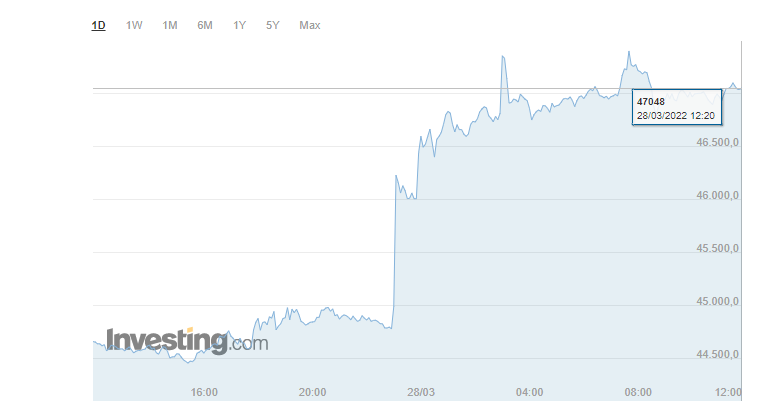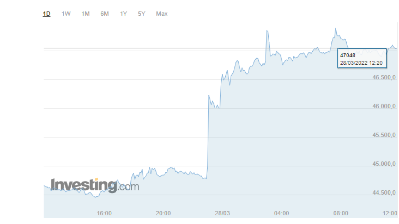 Kripto para piyasaları haftaya yükselişle başladı. Bitcoin, 47 bin doların üzerine çıktı ve 2022'nin en yüksek seviyesine ulaştı.Son dönemde sürekli dalgalı bir hareket izleyen ve düşüşte olan kripto paraları, yeni haftaya büyük bir yükselişle başladı. Son dönemde sürekli 40 ila 45 bin dolar bandında gördüğümüz Bitcoin, 47 bin doları geçti.Yüzde 5, 43 artış yaşayan Bitcoin ulaştığı seviye ile 2022'nin en yüksek değerini görmüş oldu.Güncel Bitcoin grafiği: