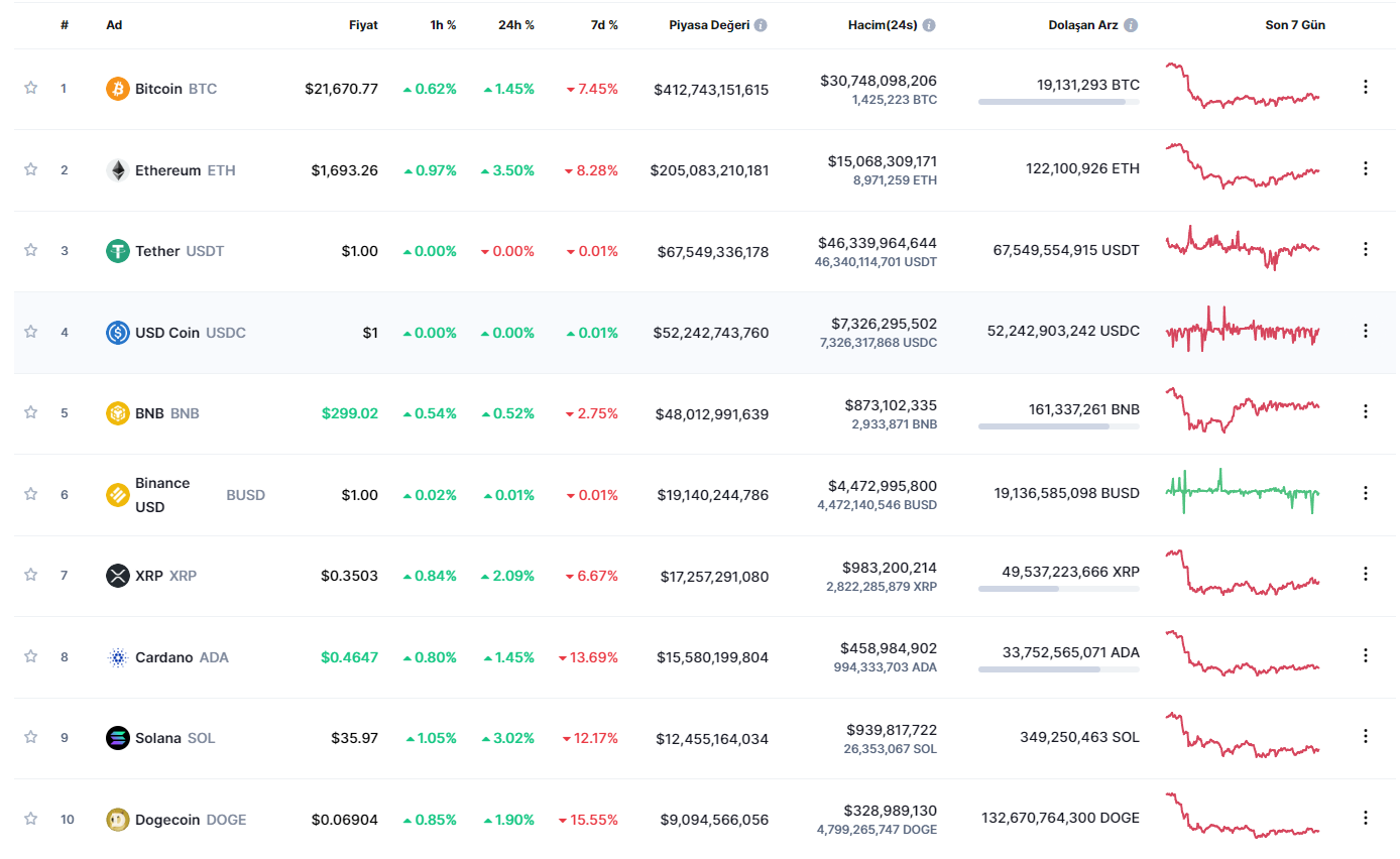 Not: Tüm bilgiler Coinmarketcap üzerinden alınmıştır.