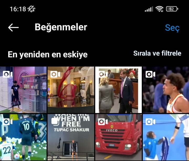 - Geçmişte beğendiğiniz gönderiler bu kısımda size görünecektir. Dilerseniz sıralayıp, filtreleyerek arama yapabilirsiniz.