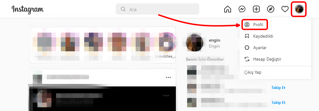 - Profil sayfanıza gelin. (Sağ üst tarafta bulunan profil resminize tıklayın ve açılan pencereden “Profil” seçeneğine tıklayın.)