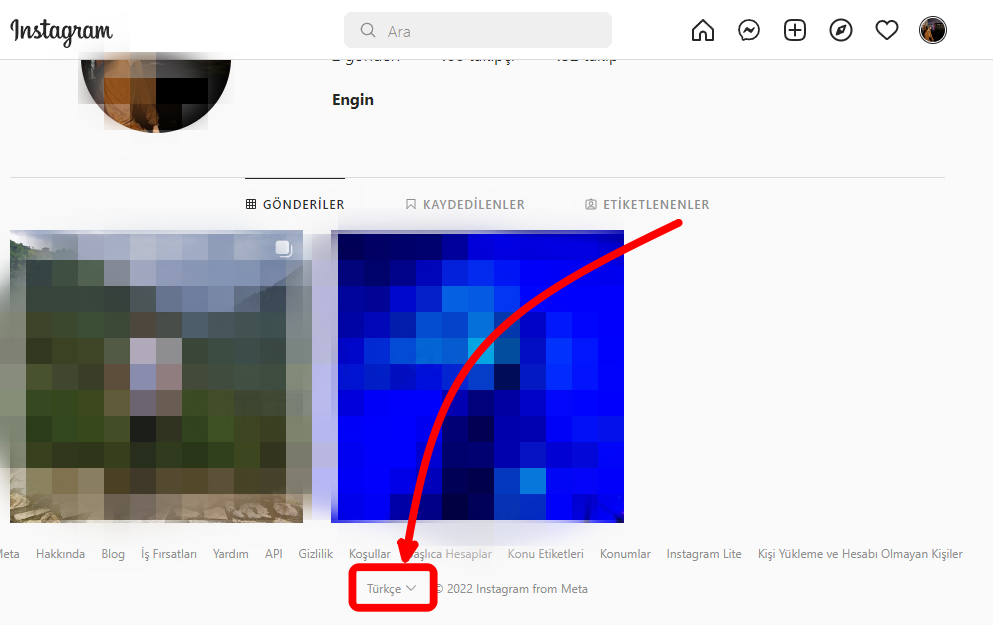 - Instagram web sayfası otomatik olarak yenilenecektir ve diliniz seçili dil ile değiştirilecektir.