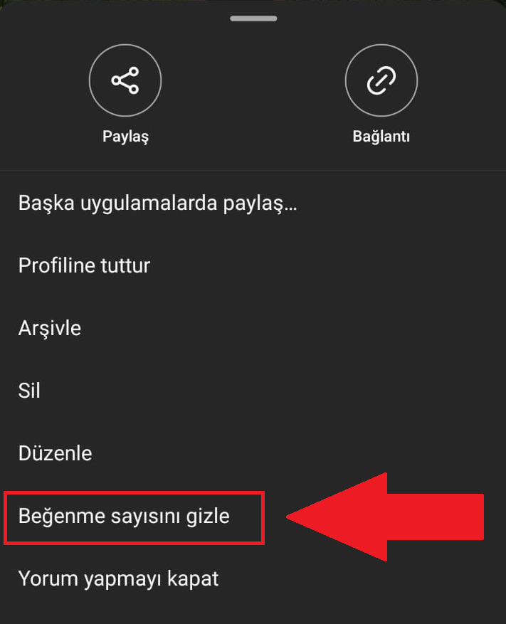 - “Beğenme sayısını gizle” seçeneğine tıklayın.