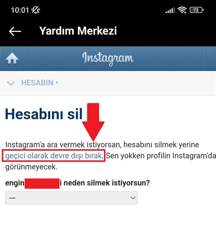 Instagram hesabınızı silmek istemiyor ve ara vermek istiyorsanız, hesabınızı dondurmayı tercih edebilirsiniz. Burada bulunan link ile direkt olarak dondurma sayfasına geçiş yapabilirsiniz veya adımları takip ederek, dondurma işlemini yapabilirsiniz.