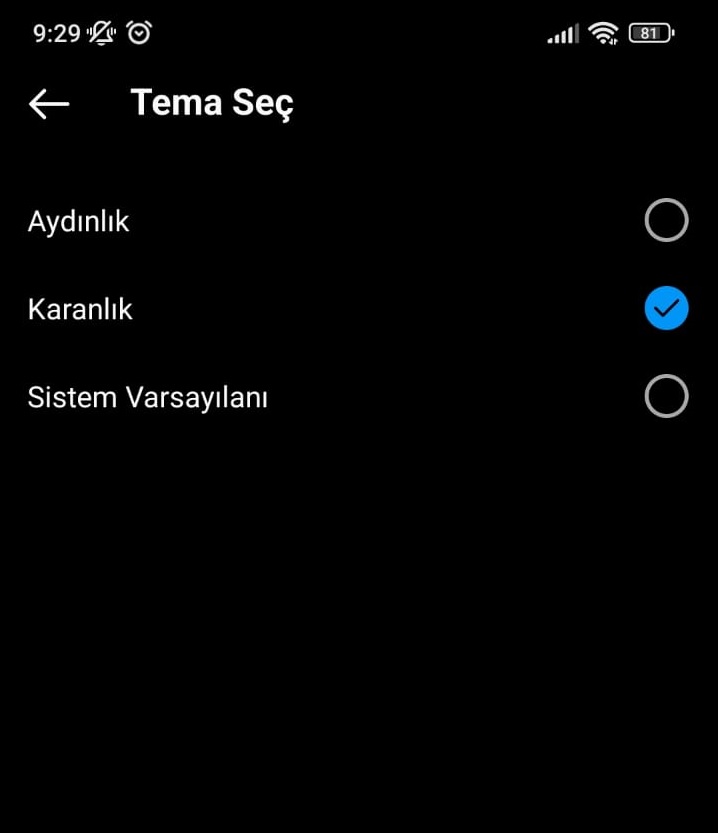 Android işletim sistemi kullanan telefonlar için tema değişimi direkt olarak Instagram uygulaması içerisinden yapılabilmektedir.