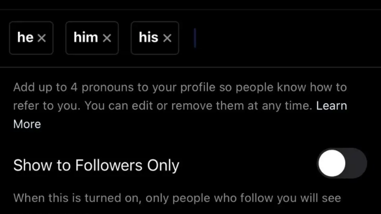 Android cihazınızda uygulamayı başlatmanız ve sağ alt köşedeki profil simgenize dokunmanız yeterlidir. Profili Düzenle bağlantısına dokunun, zamirleriniz için yeni bir alan göreceksiniz. Ona dokunun ve önceden doldurulmuş bir listeden profilinizde öne çıkarmak için dört adede kadar zamir seçebileceksiniz: (Not: Bu özellik henüz tüm kullanıcılara sunulmadı. Yakın gelecekte tüm Instagram profillerine gelecektir)