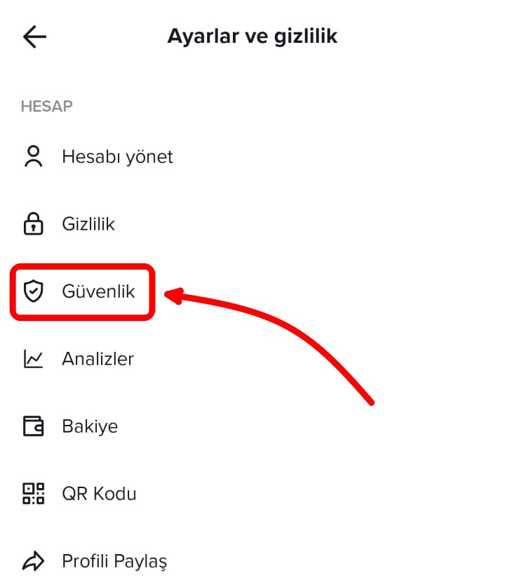 • Hesap kısmında bulunan “Güvenlik” seçeneğine gidin.