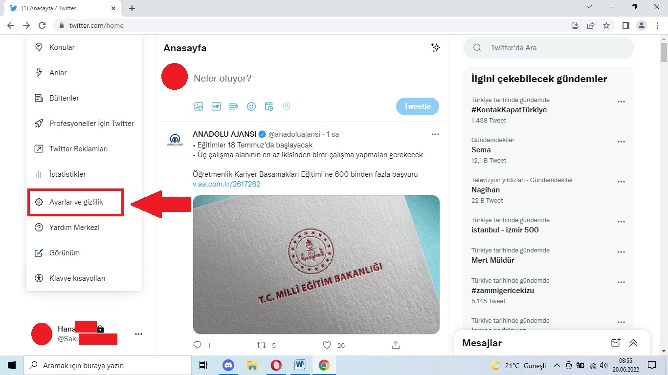 - Açılan sayfadan “Ayarlar ve gizlilik” seçeneğine tıklayın.