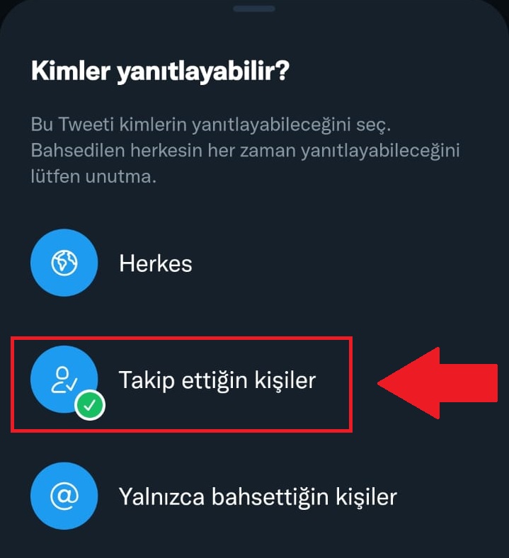 - “Yalnızca bahsettiğin kişiler” seçeneğinde ise sadece paylaşım içerisinde bahsettiğiniz kullanıcılar yanıt verebilir.