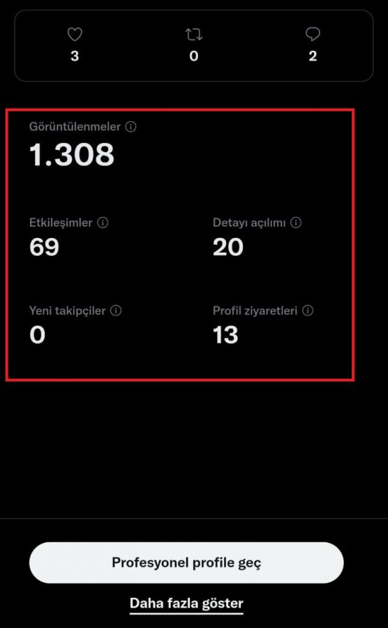 Twitter kullanıcılarının en çok merak ettiği soru profilime veya paylaşımlarıma kimlerin baktığını öğrenmek. Bu sorunun cevabını maalesef uygulama içerisinden öğrenmek mümkün değil. Ancak bu bilgiyi sizlere verdiğini iddia eden siteler veya uygulamalar var. Bu tür sitelere ve uygulamalara kesinlikle inanmayın ve kullanıcı bilgilerinizi paylaşmayın. Twitter uygulama içerisinde direkt olarak sizin paylaşımlarınıza kimlerin baktığını göstermez. Ancak paylaşım hakkında birkaç istatistik paylaşıyor. Bu istatistiklere ulaşmak isterseniz, paylaştığınız gönderiye gelin ve “Tweet etkinliğini görüntüle” seçeneğine tıklayın. Bu sayede paylaşımınızın görüntülenme sayısı, etkileşimleri, detayları ve bu paylaşım ile birlikte profilinize kaç kişinin girdiğini öğrenebilirsiniz. Profesyonel profile geçerseniz, paylaşımınız ile ilgili daha fazla detayı öğrenebilirsiniz.