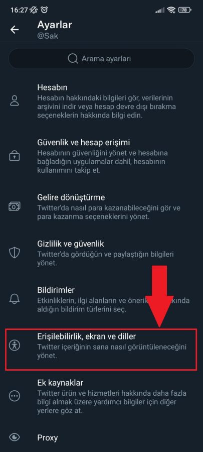 - “Erişilebilirlik, ekran ve diller”e tıklayın.