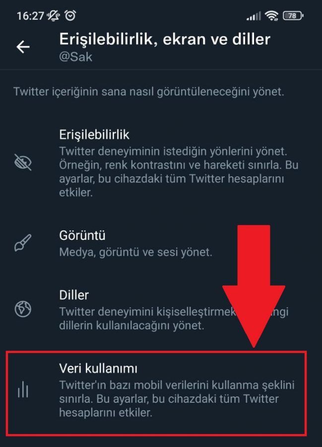 - Açılan sayfada “Veri kullanımı” seçeneğine dokunun.