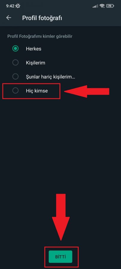 - “Hiç kimse” seçeneğine dokunun ve Alt tarafta bulunan “Bitti” tıklayın.