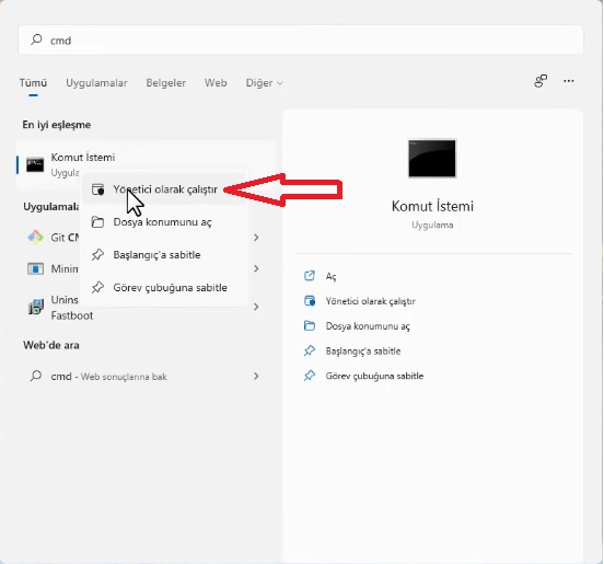 - Komut sistemi arayın ve gelen komut sistemi uygulamasına sağ tıklayarak yönetici olarak çalıştırın.