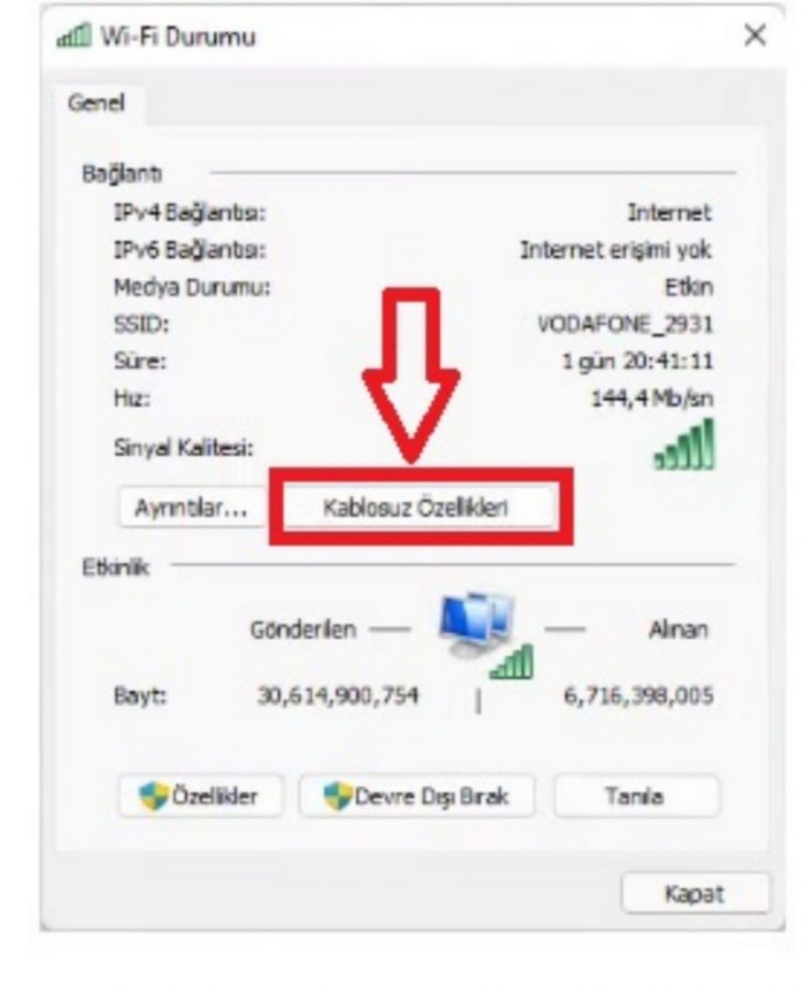 - Gelen ekranda Kablosuz Özellikleri yazan yere tıklayın.