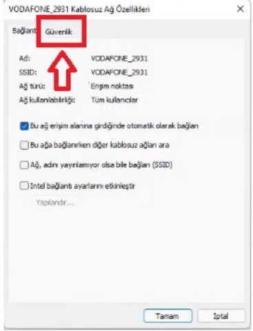 - Açılan sekmeden Güvenlik başlıklı yere tıklayarak geçiş yapın.